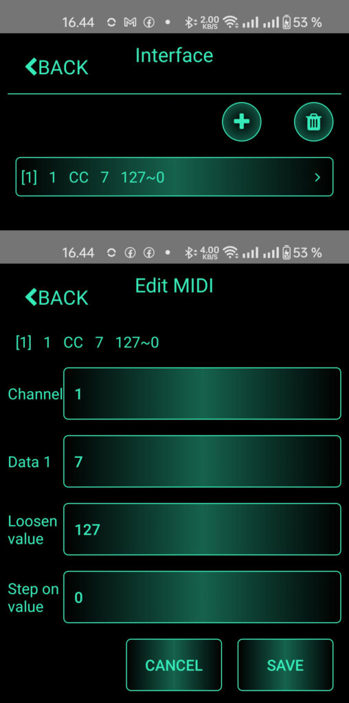 Interfaces in both APP are quite identical. On PC you see everything in one glance, but in mobile app you are using three screens. There’s one bigger difference. In mobile app expression pedal can be set by clicking Expression pedal -icon on the main screen. In PC app it’s the ”Interface”-button on top and make sure the interface type is set to Expression Pedal.