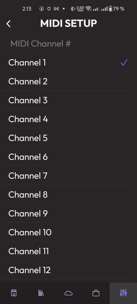- To verify the selection: Exit the menu and reopen the MIDI list. Ensure the checkmark is now solidly visible next to Channel 1.